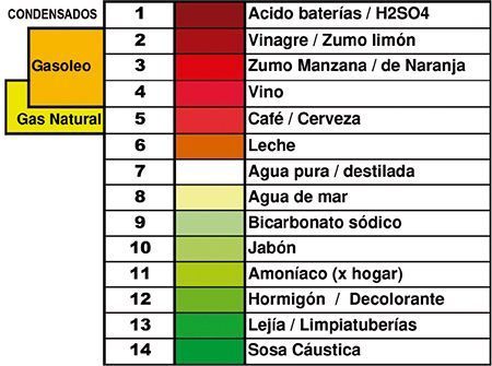 Debido al pH de los condensados, el mantenimiento deberá considerar: