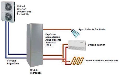 Las Bombas de Calor aerotérmicas multitarea dan cobertura tanto a la demanda de climatización (calefacción/refrigeración), como a la de ACS, tomando el calor disponible en el aire exterior (en el caso de calefacción y ACS) o cediéndolo a este medio (en el caso de refrigeración), es decir, constituyen una solución “integral”.