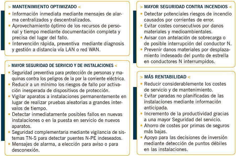 Las estadísticas de las Compañías de seguros indican que, eventuales deficiencias existentes en las instalaciones eléctricas son la causa más frecuente de incendios. Las interrupciones del servicio debido a la activación inesperada de dispositivos de protección ocasionan elevados costes a las empresas. Ambas cosas tienen una causa común: corrientes incontroladas, por ejemplo: corrientes de fuga que no son detectadas a tiempo.