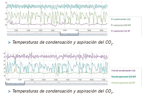 · Tª evaporación CO2 BT (ºC) y Tª aspiración CO2 BT (ºC)