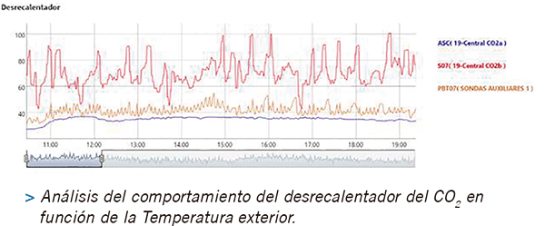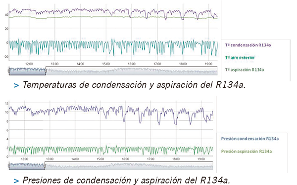Igualmente se ha verificado la estabilidad de funcionamiento de la central en cuanto a la continuidad de funcionamiento, estabilidad de temperaturas de evaporación del CO2 (MT y BT), condensación del CO2, y evaporación del R134a, oscilaciones, tiempo de respuesta de puesta a régimen, tiempos de ciclo de paro/marcha de compresores a capacidad mínima.