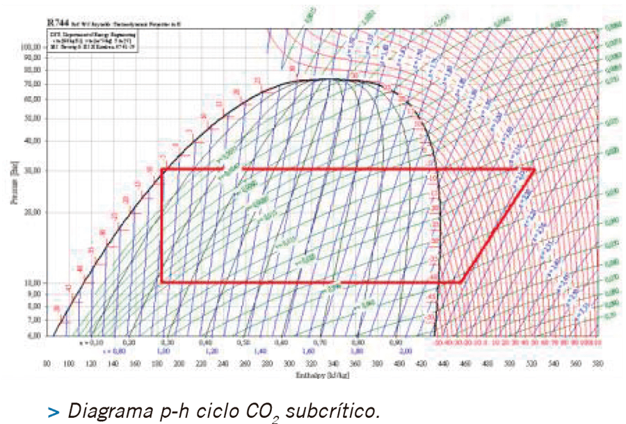 Por otro lado, destacar que la presión de diseño del sistema subcrítico a 55 bar nos permite utilizar componentes comerciales disponibles en el mercado y técnicas constructivas tradicionales, de fácil instalación y mantenimiento y de menor coste y mayor fiabilidad que los sistemas de CO2 transcrítico a 120 bar.