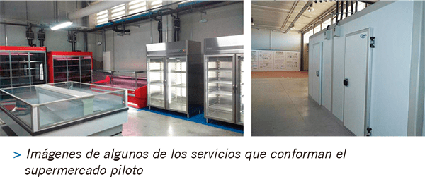 Por otro lado, conectados a la central frigorífica de CO2, se han instalado dos vitrinas y tres armarios murales para frío positivo, un armario mural de frío negativo y una isla de congelados. Completan los servicios del supermercado piloto dos cámaras de almacenamiento: una de media temperatura (2ºC) y otra de baja temperatura (-15ºC).