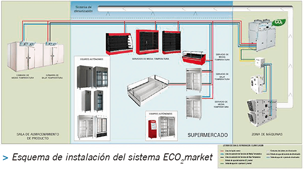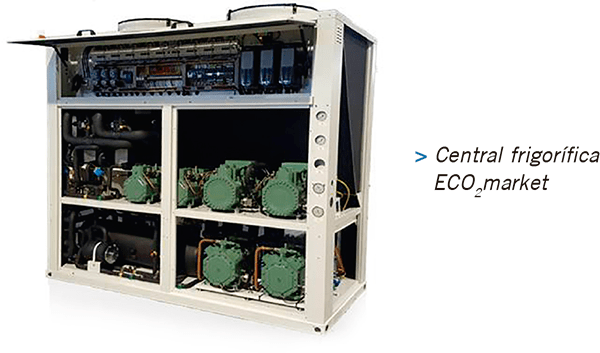 El sistema ECO2market es un sistema de refrigeración con CO2 especialmente diseñado para la refrigeración comercial en supermercados