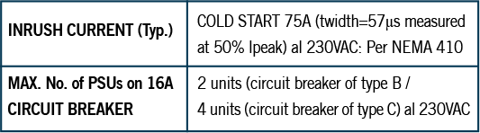 • Intensidad de arranque (inrush current). Intensidad en amperios del pico de arranque del controlador.