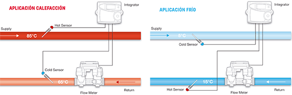 :: Combinado: se instala el caudalímetro en el retorno, donde hay menos temperatura en modo calefacción y donde hace menos frío en modo de enfriamiento.