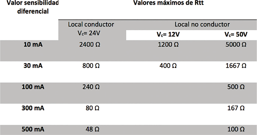 Si tenemos en cuenta este criterio podemos justificar el valor de resistencia de puesta a tierra según la siguiente tabla: