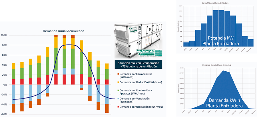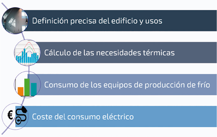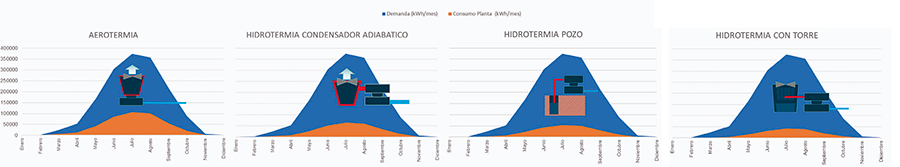 A partir de ahí ya se puede establecer un consumo real de cada sistema contabilizando la condensación de la planta enfriadora y todos los elementos necesarios para el transporte de energía en condensación.