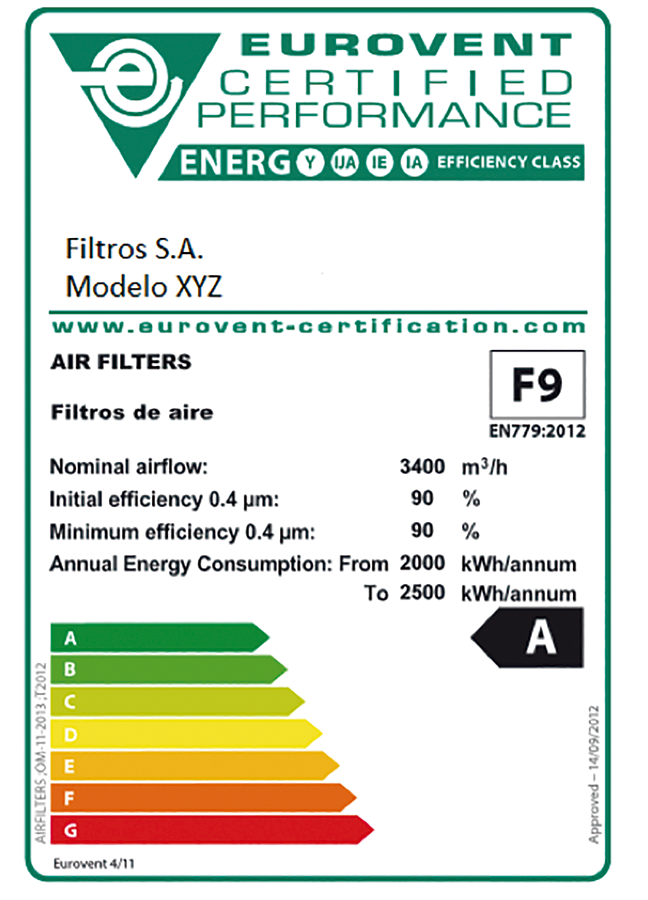 Otro aspecto importante a considerar es el referido al consumo energético vinculado a la climatización. Así, la metodología EUROVENT 4/11 de calificación energética de filtros permite conocer, mediante una etiqueta, el consumo de un tipo de filtro para un caudal nominal determinado. Establecer una relación sobre el coste de diversos filtros de características similares pero con eficiencias energéticas diferentes es importante a la hora de planificar y diseñar una instalación de tratamiento del aire.