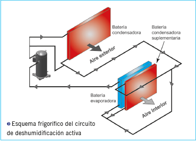 De esta manera, además de tener un control de humedad en cualquier época del año, se realiza de forma eficiente y reduciendo los costes de operación, ya que se recupera la energía de condensación para recalentar el aire en lugar de tener que hacerlo por medios auxiliares (batería eléctrica o de agua caliente).