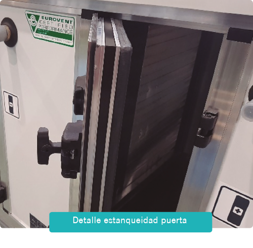 Fundamentalmente vamos a prestar atención a tres aspectos, el caudal de aire fugado a través de las juntas del sistema de recuperación de energía, la disposición del ventilador respecto al resto de componentes del climatizador (intercambiadores, silenciadores, …) y el sistema de sujeción y fijación de los filtros.