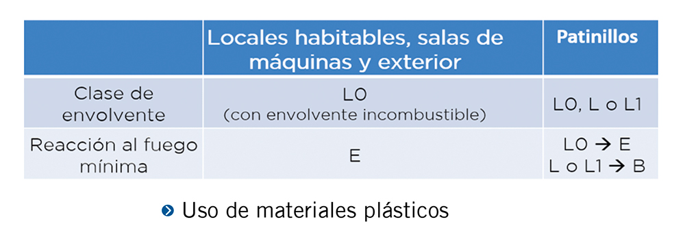 En relación con el uso de materiales plásticos, se definen las siguientes condiciones para su instalación: