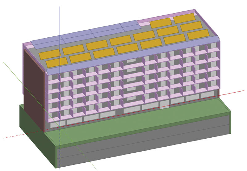 Para el edificio de estudio se ha considerado un hotel de 4 estrellas con 120 habitaciones ubicado en la zona climática D3 (ciudad de Madrid). Este edificio se ha modelado con Design Builder, cumpliendo todos los requisitos constructivos y de diseño que aparecen en las diversas secciones del CTE (HE1 en cuanto a medidas pasivas y H3 en cuanto requisitos energéticos para la instalación de iluminación).