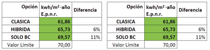 Si simulamos energéticamente cada caso, observamos que las tres opciones cumplen los valores límite de consumo de energía primario indicados en la sección HE0 del CTE: