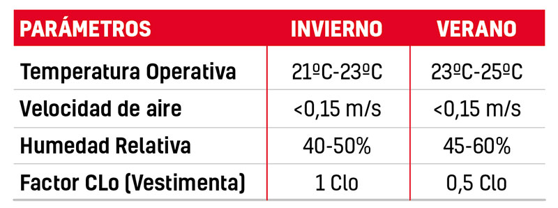 En este sentido y como medida de ahorro energético, la UNE-EN ISO 7730 describe dicha horquilla de las condiciones básicas de confort. El RITE lo recoge en la tabla 1.4.1.1.