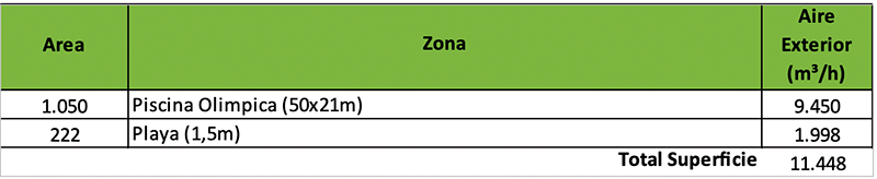 - Unifica la ventilación de las piscinas solo por su superficie. Lo que de entrada no parece correcto.