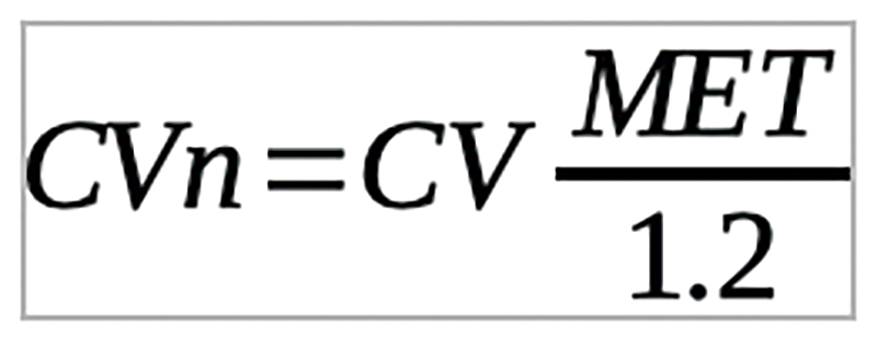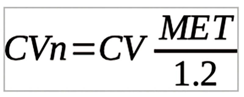 “Si la actividad metabólica es mayor que 1,2 met, las tasas de aire de ventilación deberán aumentarse por un factor de proporcionalidad igual a la relación entre el valor del metabolismo considerado (en met) dividido por 1,2. Es decir, indicando con CV el caudal de aire de ventilación de la tabla anterior válido para una actividad metabólica de 1,2 met, el caudal de aire de ventilación CVn para otro valor de metabolismo MET será:
