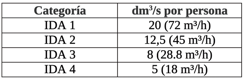 Método indirecto de caudal de aire exterior por persona