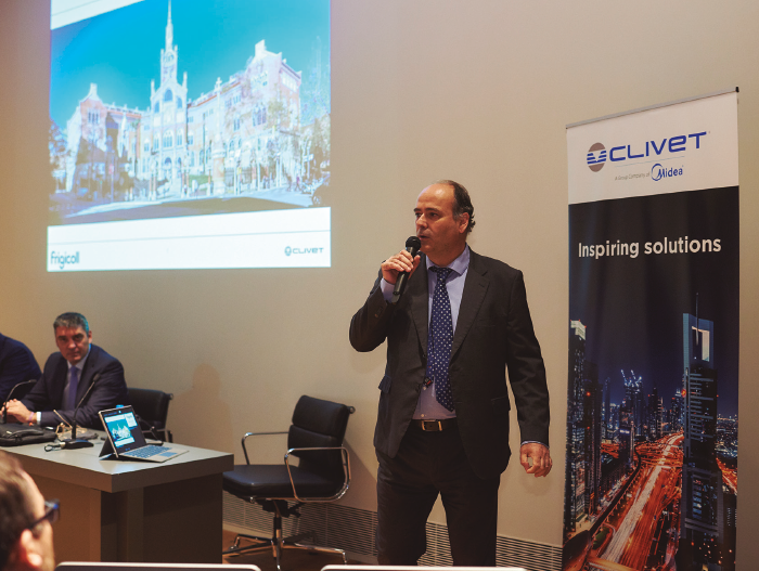 El evento se celebró en las instalaciones de Frigicoll, ubicadas en la localidad de Sant Just Desvern (Barcelona), y fue introducido por el responsable de la unidad de negocio, Eduardo Romano, y el director de ventas, Josep Castelar, y en él se revelaron detalles de interés relativos a la nueva colaboración y a su gama, haciendo especial hincapié en la complementariedad de las dos marcas, Midea y Clivet.
