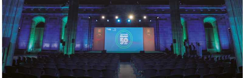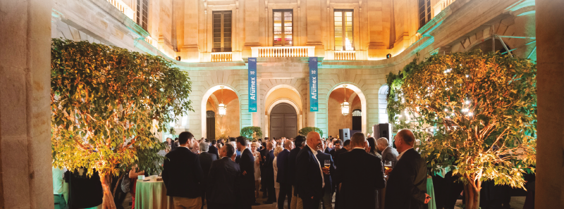 En el marco de la histórica Llotja de Mar de Barcelona, la firma Prysmian Group congregó a 250 invitados para compartir la celebración del 50 aniversario de la tecnología Afumex®. El acto se celebró en un ambiente festivo y resultó ideal para propiciar encuentros y reencuentros, así como para desencadenar la puesta en escena de diversas sorpresas ideadas especialmente para la ocasión. Los asistentes fueron recibidos en el Pati dels Tarongers y obsequiados con un presente, una original lámpara solar, que cada uno de ellos fue depositando en un panel instalado frente a la escultura de estilo neoclásico que preside la Escalera de Honor y que exhibía la frase “Afumex es vida”.